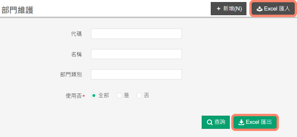 作業位置:維護作業 / 基本資料 / 部門維護
