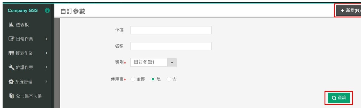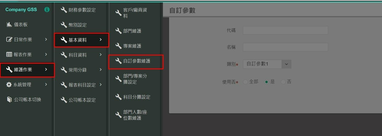 作業位置:【維護作業 / 基本資料 / 自訂參數維護】