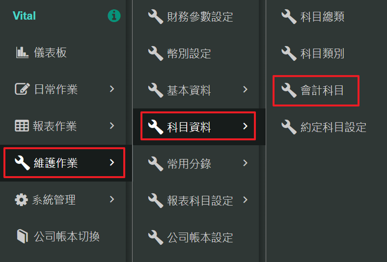 1. 若要新增科目,請至【維護作業>科目資料>會計科目】。.png)
