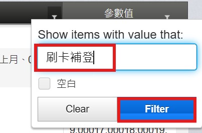 3. 點選 [描述] 右下方漏斗搜尋 [刷卡補登] 後按 【篩選】。