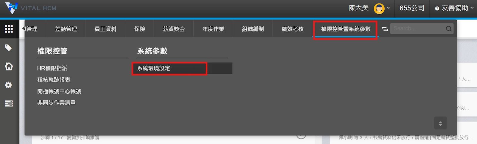 1. 請至【全站功能】>【權限控管暨系統參數>系統環境設定】。