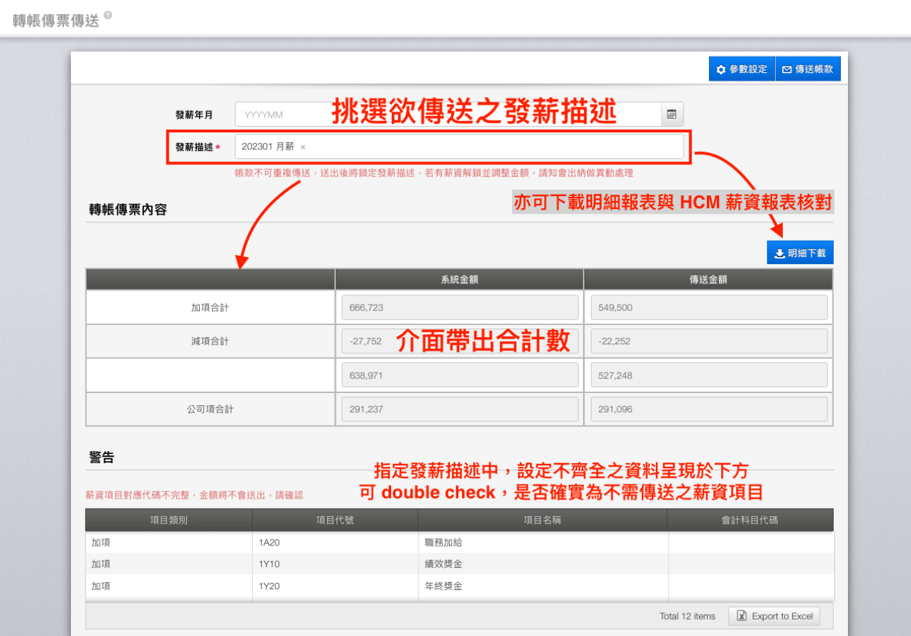 傳送帳款前,可下載明細先檢視,確認無誤再執行傳送