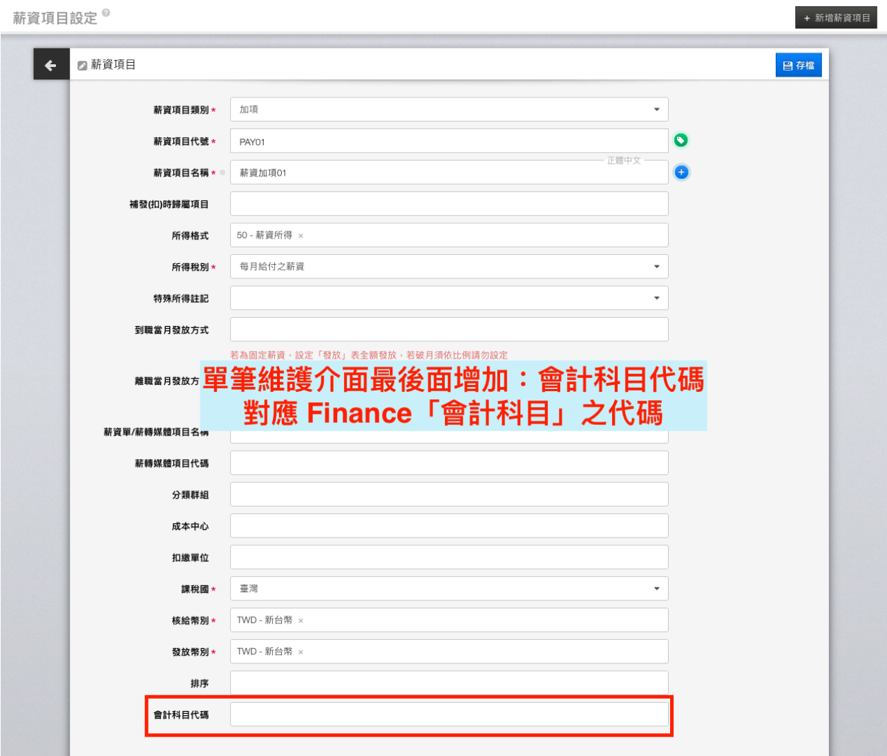 薪資項目設定,設定會計科目代碼