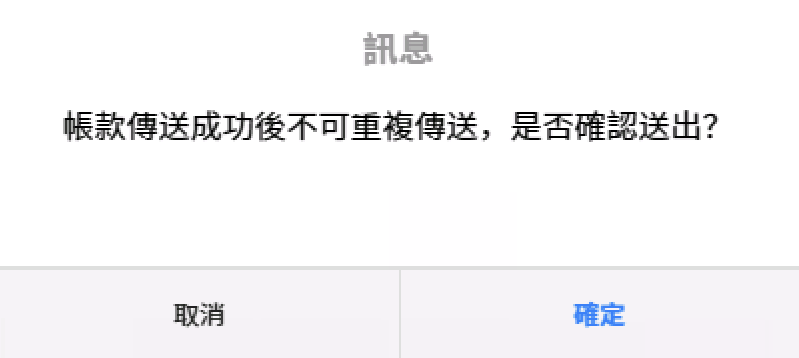 執行帳款傳送時,會再有訊息提醒是否確認送出