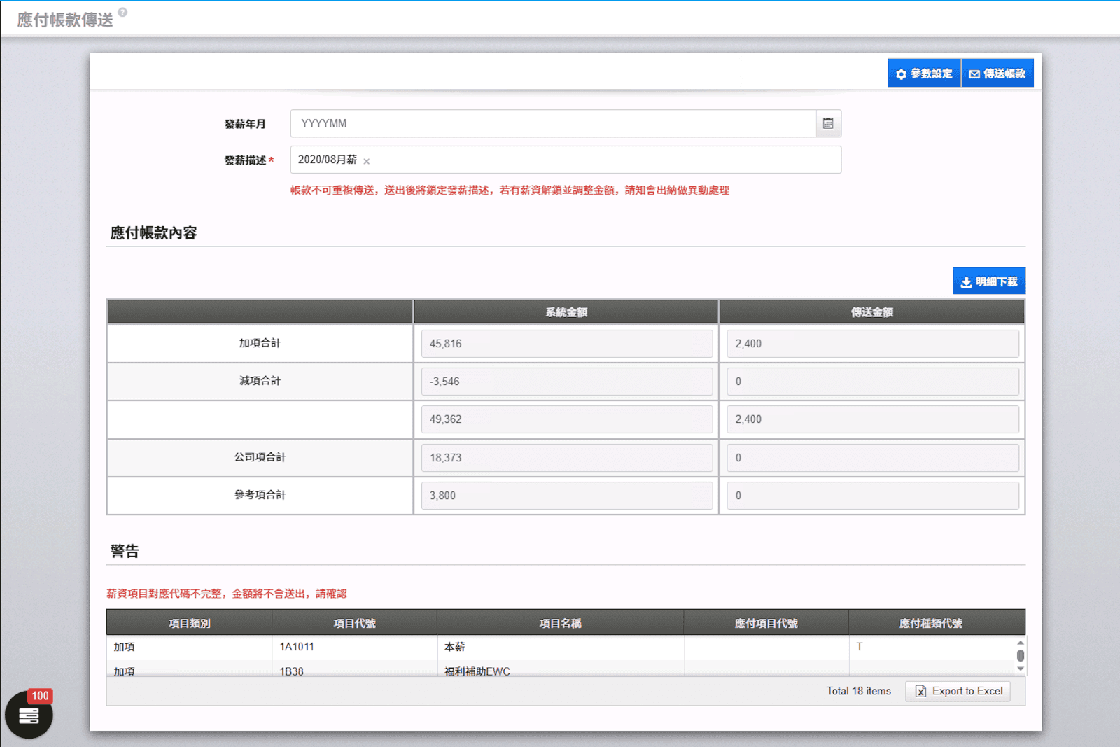 應付帳款傳送前,請先至[參數設定]設定帳本識別碼