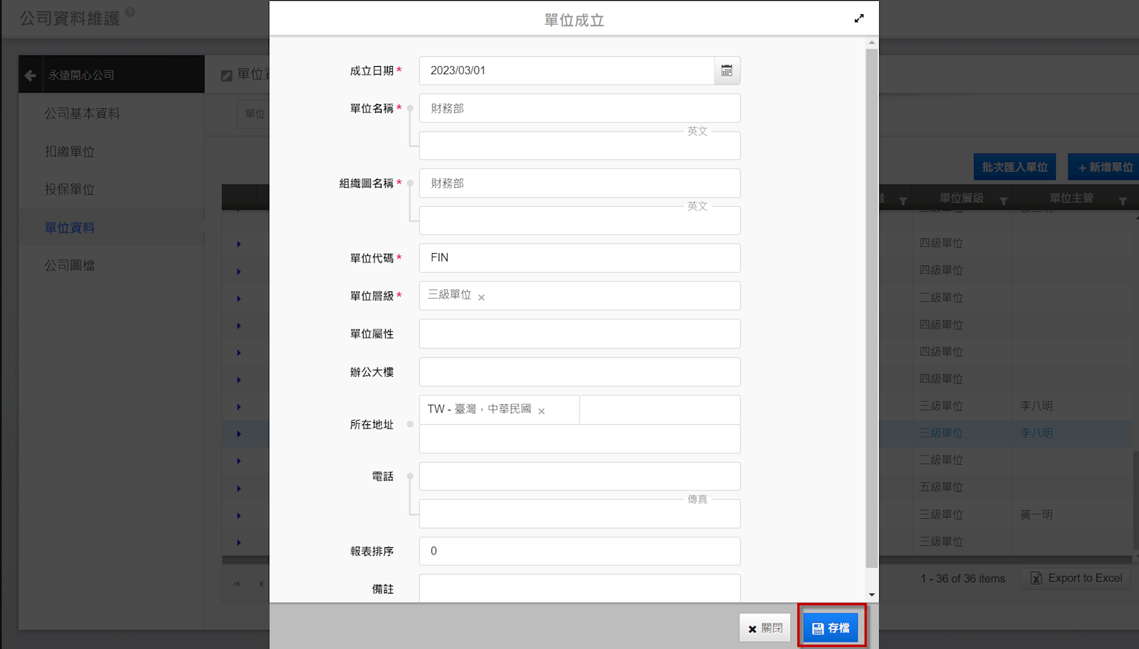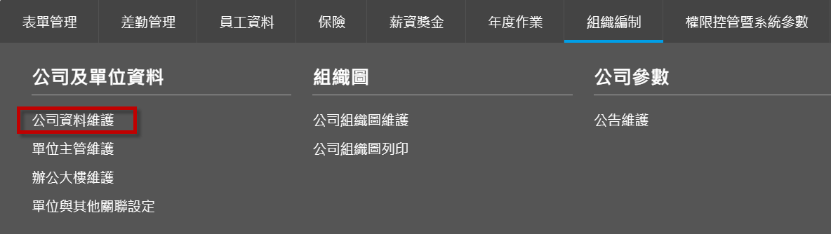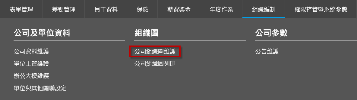 單位新增後,至【組織編制>組織圖>公司組織圖維護】