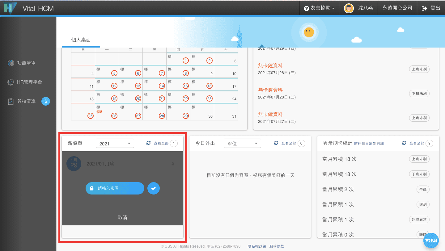 如果員工要在系統內查看薪資單,輸入的密碼為身分證後四碼。