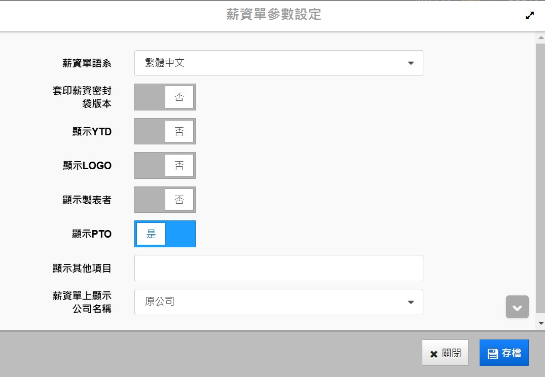 *顯示其他項目:可下拉選單選擇欲顯示於薪資單上的項目