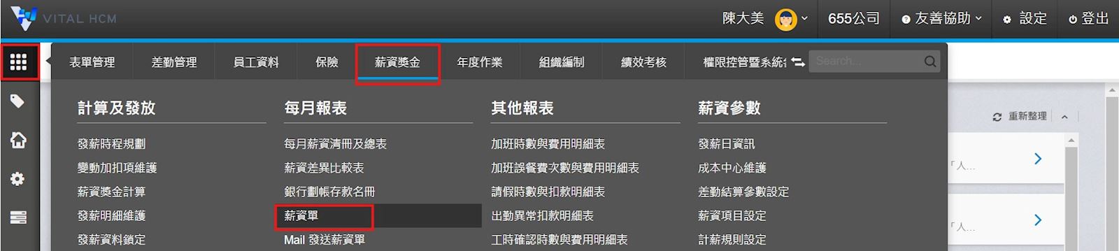 1. 依【全站功能>薪資獎金>薪資單】進入