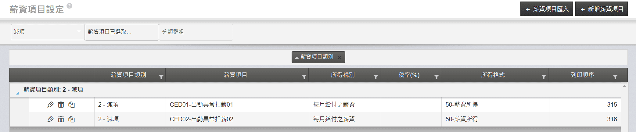 - 單購薪資客戶:可使用「出勤異常扣款資料維護」匯入出勤異常的原始資料