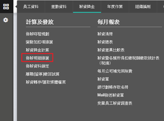 1. 請至【全站功能>薪資獎金>發薪明細維護】