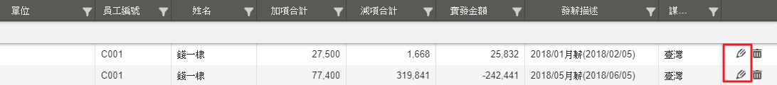 2. 找到欲補充備註的薪資資料,點選修改進入