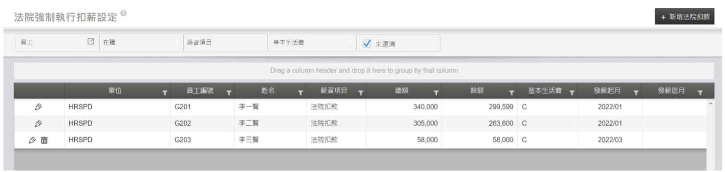2. 已薪資計算過的法扣設定資料,不可執行刪除