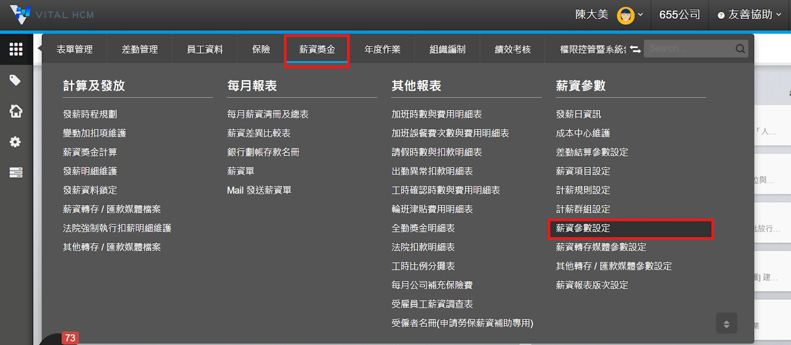 1. 請至【全站功能】>【薪資獎金>薪資參數設定】。