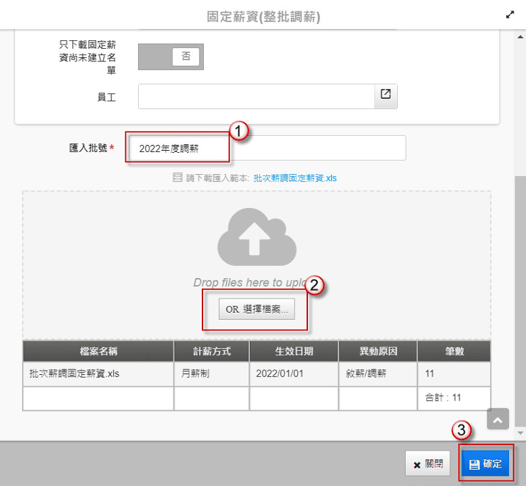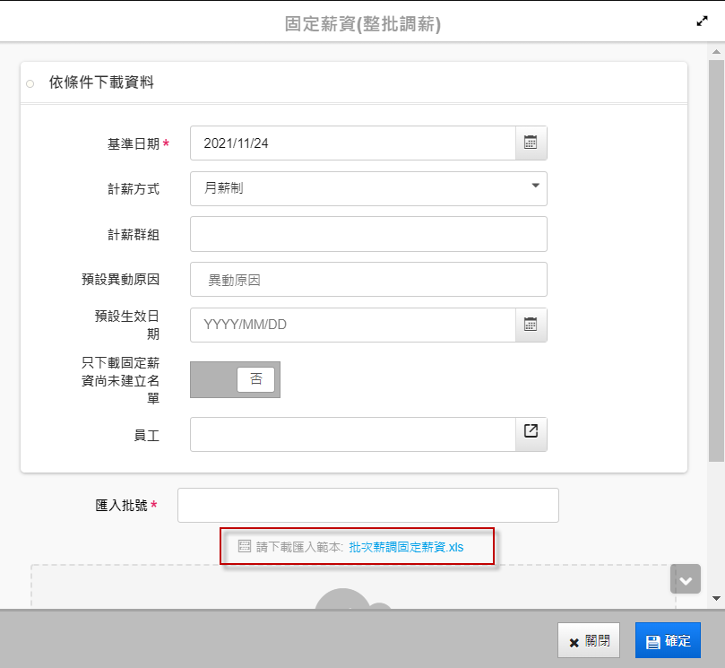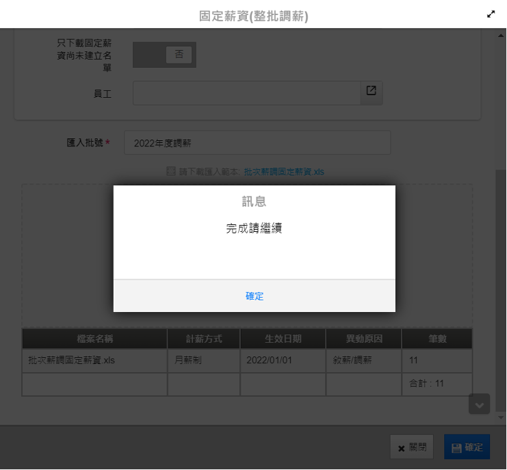 5. 在【固定薪資維護】畫面上方輸入批號,即可再次確認上傳的筆數及內容。