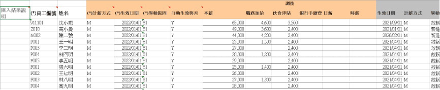 *註:當遇到最低薪資法規調整時,可至【員工資料>人事報表>員工薪資保險名冊】下載報表,利用薪資欄位去篩選出需調整的人員名單