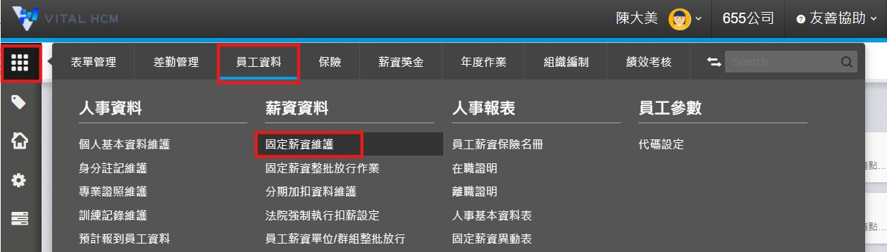 1. 點擊【員工資料>薪資資料>固定薪資維護】。