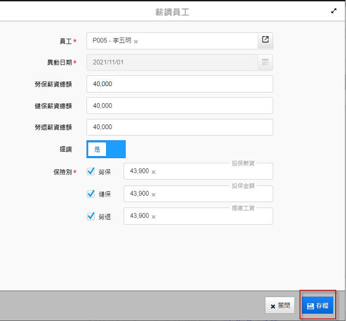 選擇員工後,點選右下角「存檔」即可。