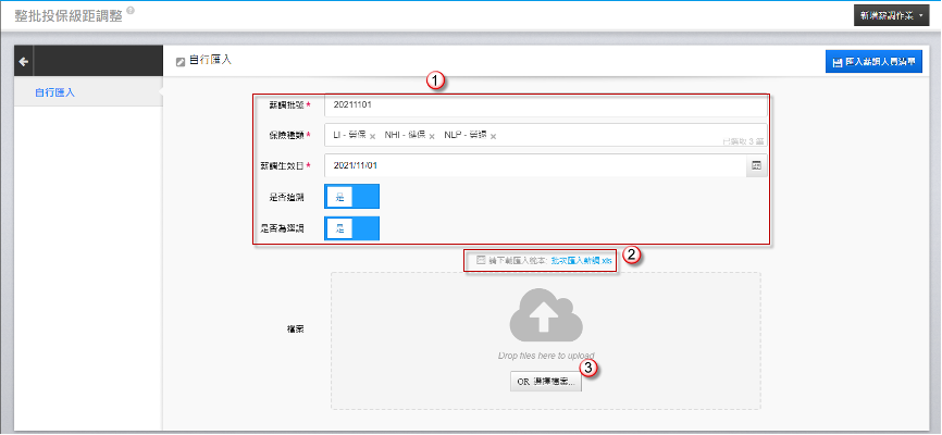 1. 輸入相關欄位後,下載匯入範本。