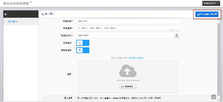 二、自行匯入:直接提供員工的投保薪資,由系統對應出應調整的投保級距