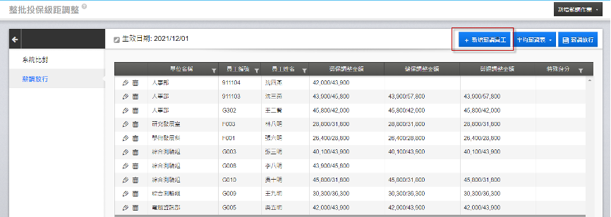 4. 若有額外需納入調整的員工,可點選「新增薪調員工」。