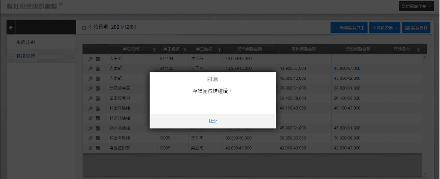出現以下訊息代表薪調放行作業完成。