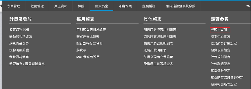 5. 如要調整計薪日及給付日期,請至【全站功能>薪資獎金>薪資參數>發薪日資訊】調整。