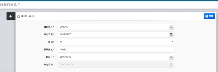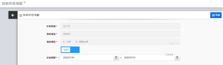 下圖為計薪週期修改的畫面,修改完成,按下右上角「存檔」即可。