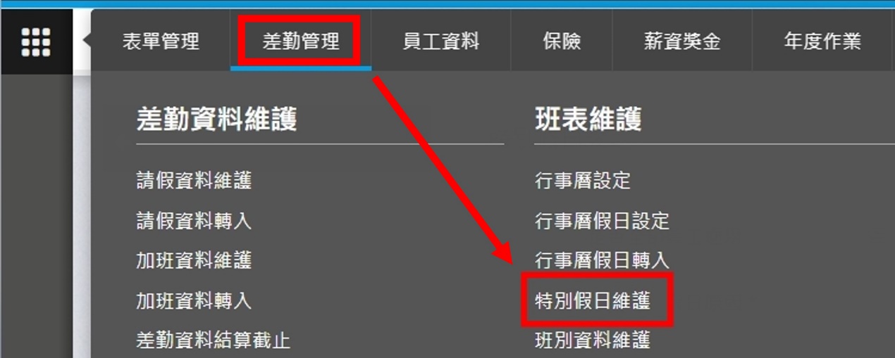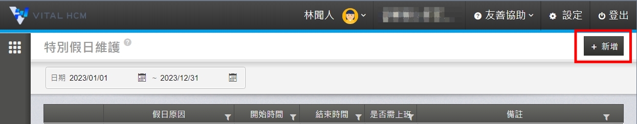1. 首先,在【功能清單】>【差勤管理】>【班表維護】>【特別假日維護】 點選【新增】。.jpg)