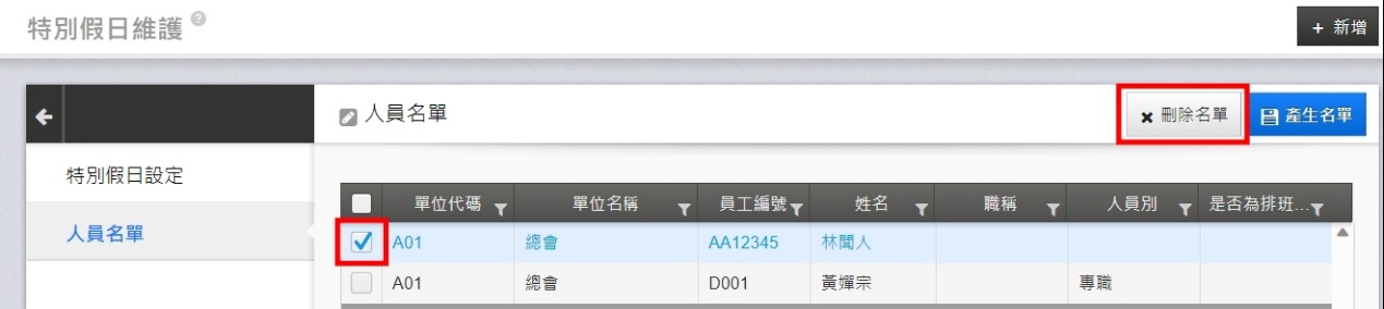 11. 若有需要單獨刪除的人員勾選方框後點選【刪除名單】
