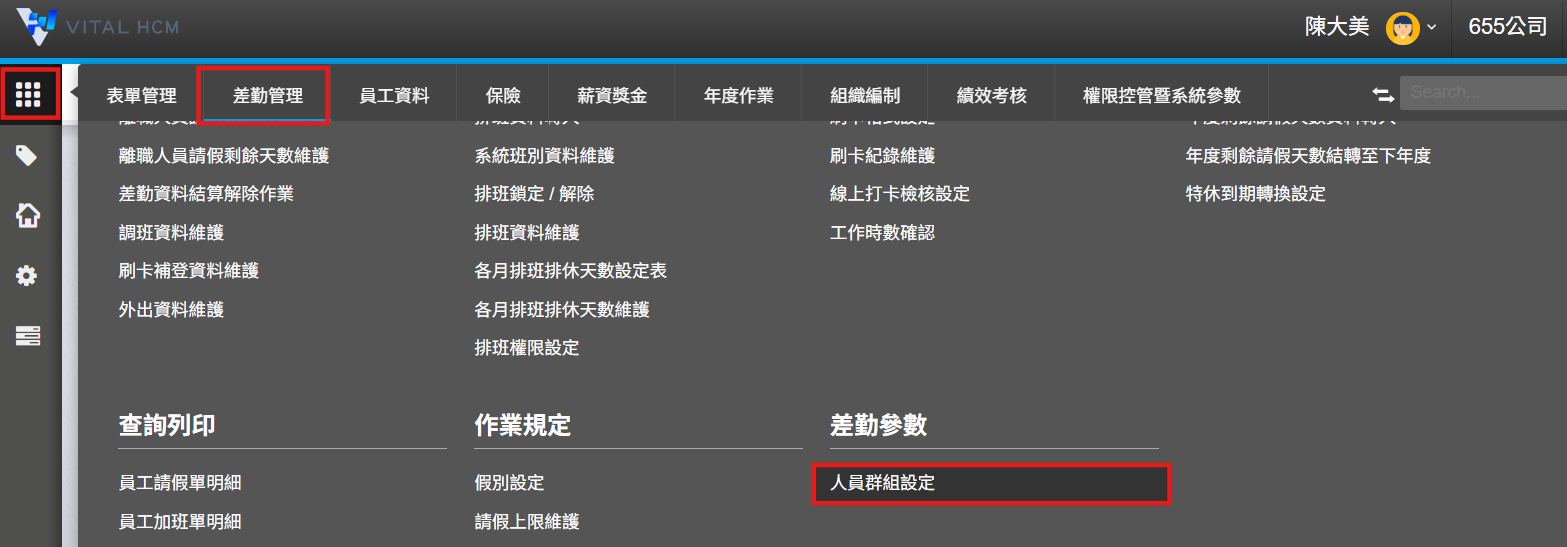 1. 請至【全站功能】>【差勤管理>人員群組設定】。