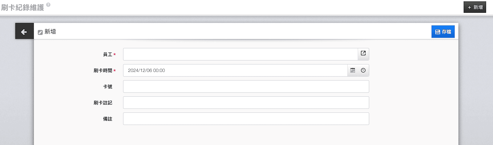 3. 列表右上角的「新增」以建立正確的刷卡
