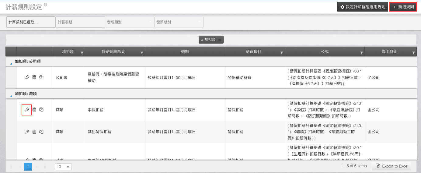 路徑:全站功能/薪資獎金/薪資參數/計薪規則設定