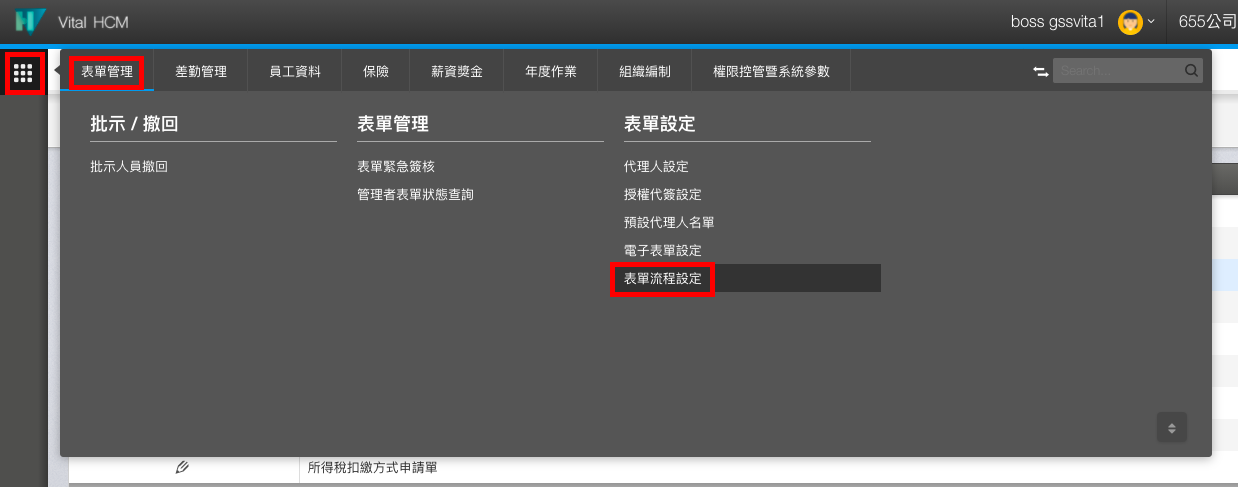 點選【全站功能>表單管理>表單設定>表單流程設定】。