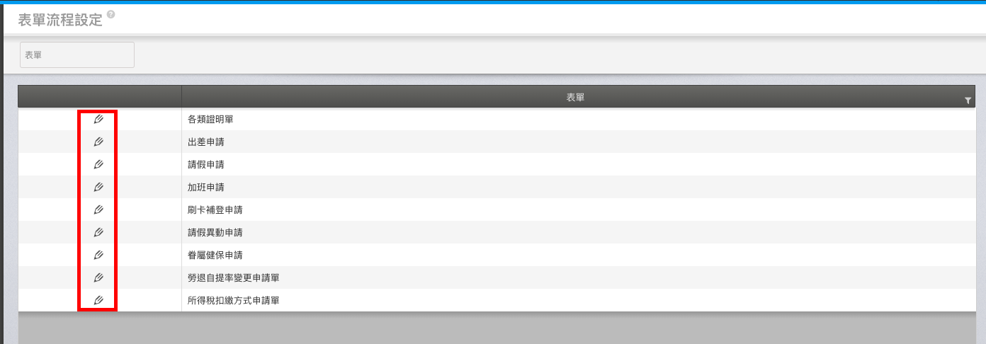 您可以在此選擇要編輯的表單流程,並點選前方的鉛筆圖示,進入修改畫面。