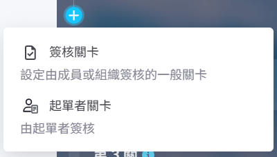 2. 點擊加簽後,會出現「+」的符號,點擊該符號後可以選擇關卡類型。