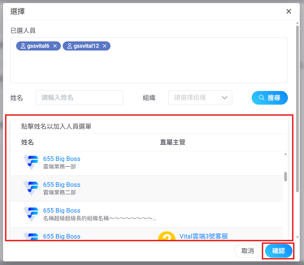 3. 點選【選擇】加入簽核人員(可多選)。