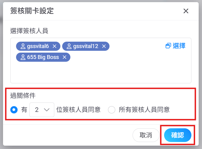 4. 設定過關條件為幾人同意或是需全部同意後點選【確認】。.png)