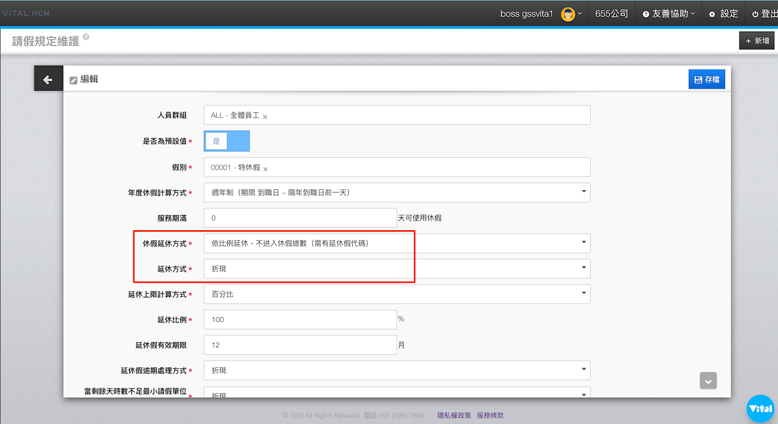 3. 休假延休方式:依比例延休,不併入休假總數、延休方式:可以選折現或轉為延休天數