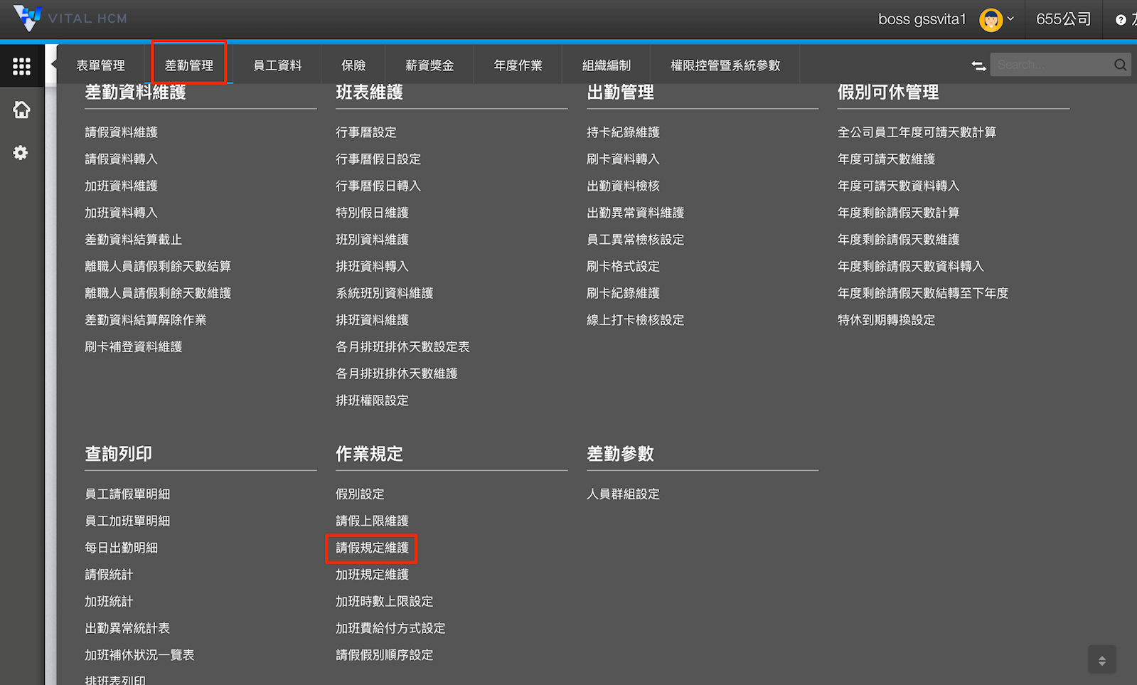 1. 請至【差勤管理>作業規定>請假規定維護】