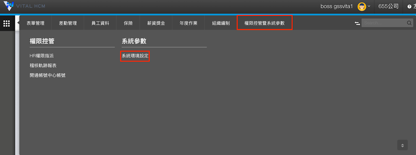 點擊【權限控管暨系統參數>系統參數>系統環境設定】。