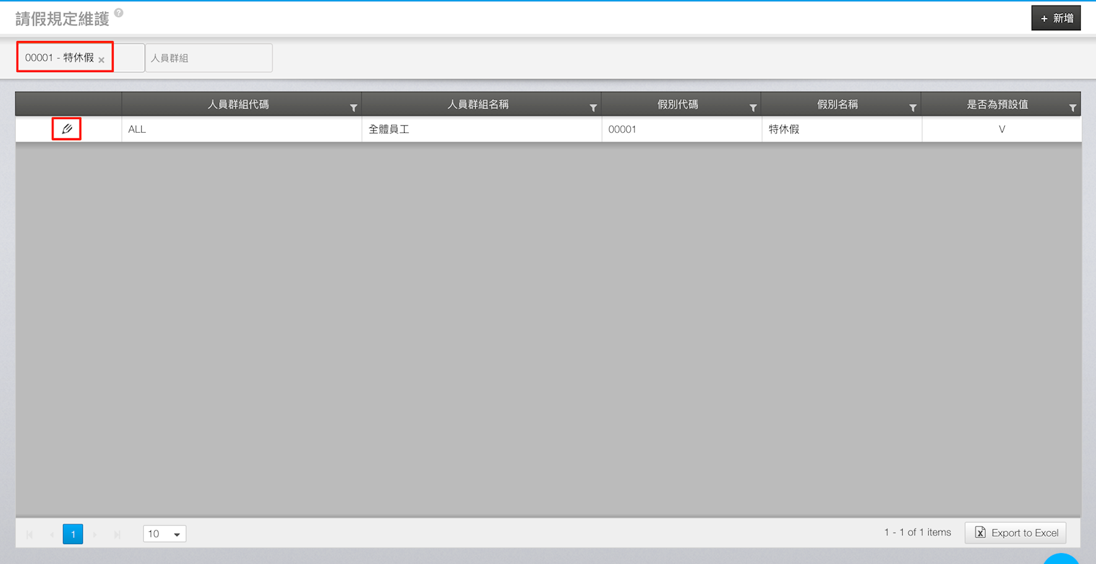 2. 將假別選為「特休假」,並點擊「鉛筆」圖示進行修改。