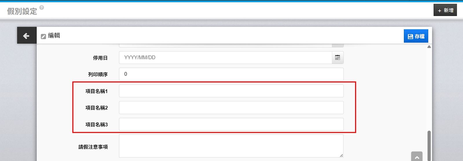 註:「項目名稱」欄位可以自訂欄位讓員工在請假的時候輸入相關訊息,但因為該欄位為非必填,因此若有設定但員工沒有填寫不會影響表單的送出。