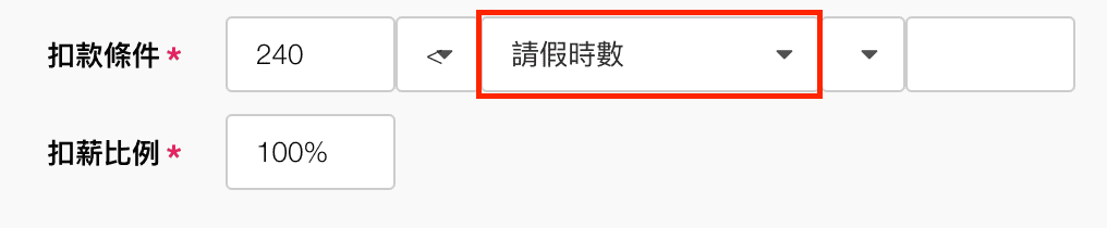 2. 在【差勤結算參數設定>請假扣款】將 生理假 相關的扣款條件改為 「請假時數」