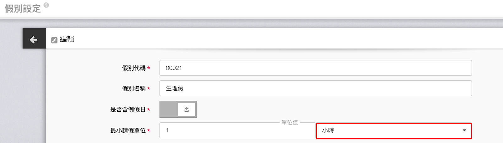 1. 在【假別設定】將 生理假 的【請假申請單位】改為「小時」