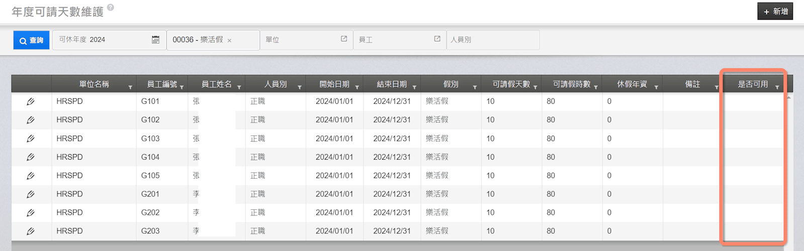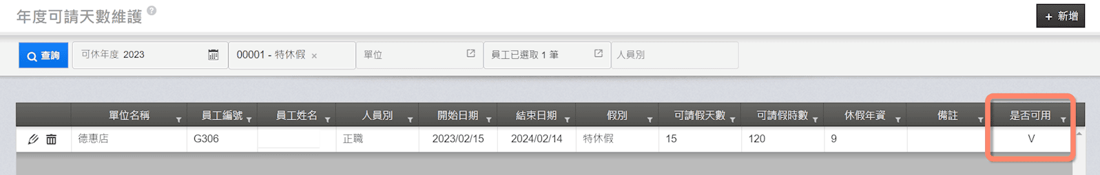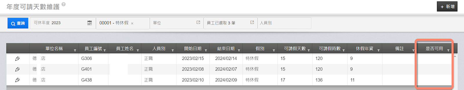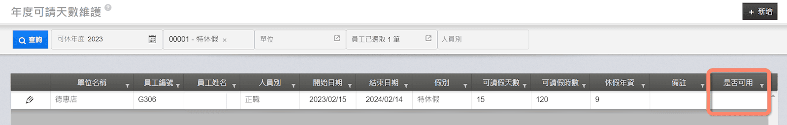 - 年度剩餘休假結算後,原可休更新為不可用。