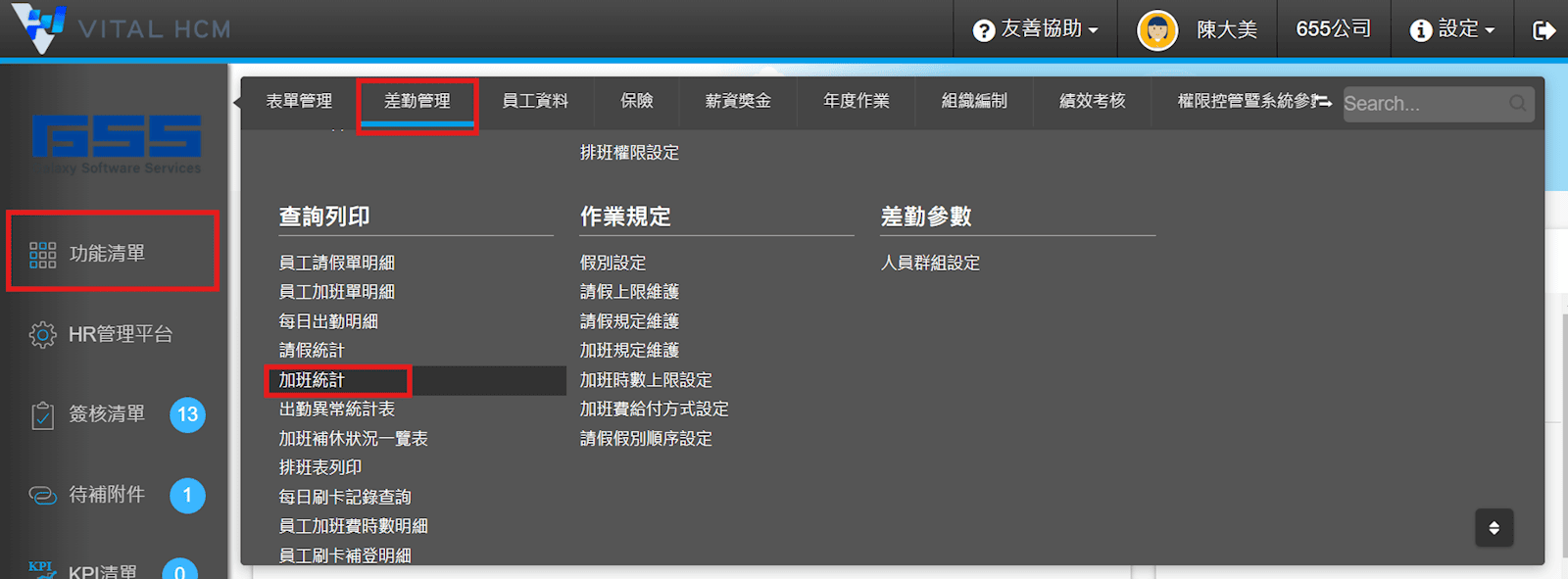 此功能提供員工、主管及系統管理者,查詢員工於特定期間內加班統計資料。