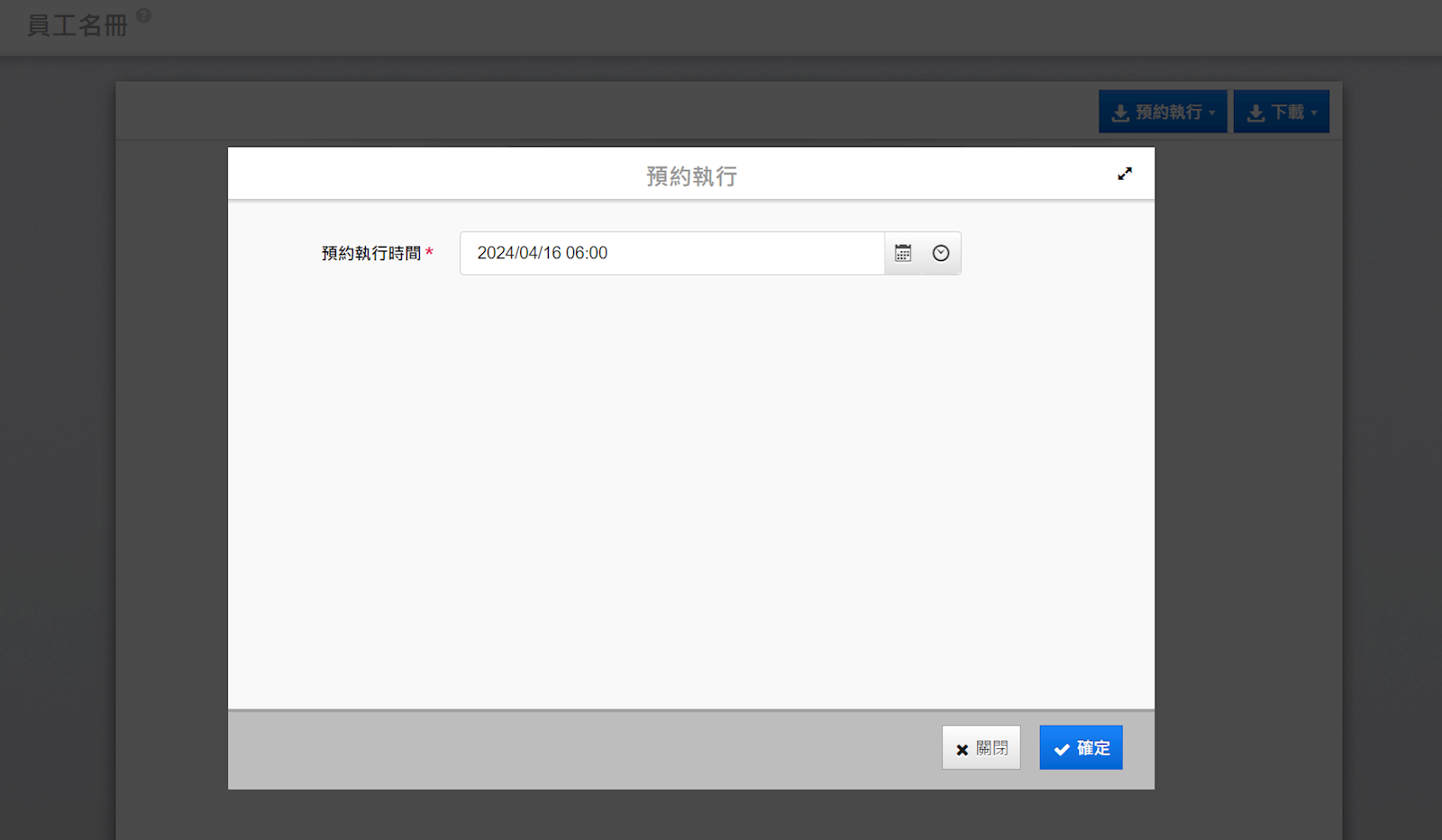 可選擇預約執行作業,例:今天下班前先預約執行,隔天上班可直接下載檔案。