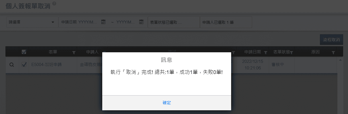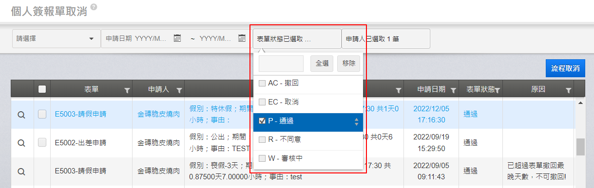 在這裡可以看到不同狀態的表單,即使是已經通過的,也能夠自行取消。