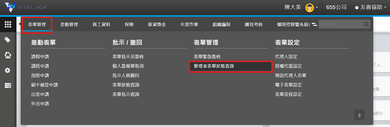 1. 請至【全站功能】>【表單管理>管理者表單狀態查詢】。